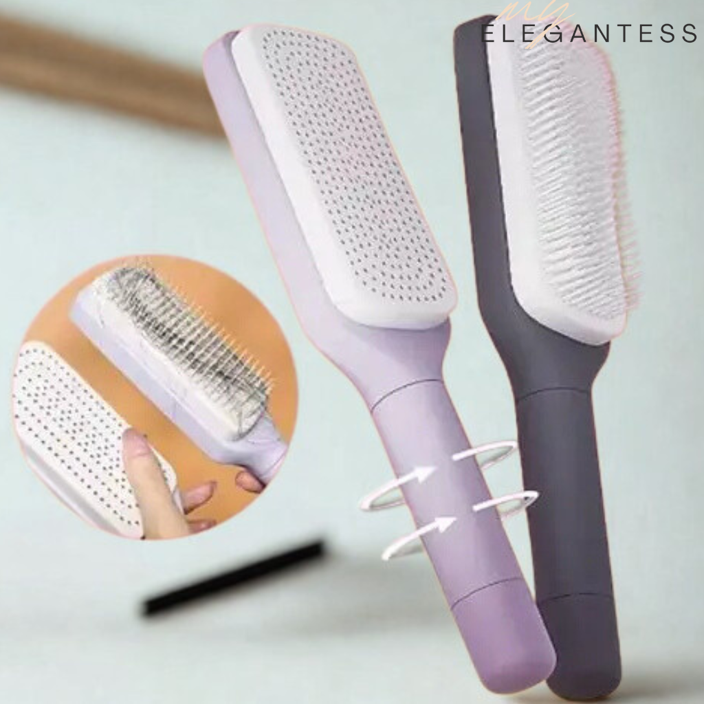 Selbstreinigende Haarbürste mit Drehgriff – smart, sauber, stylisch