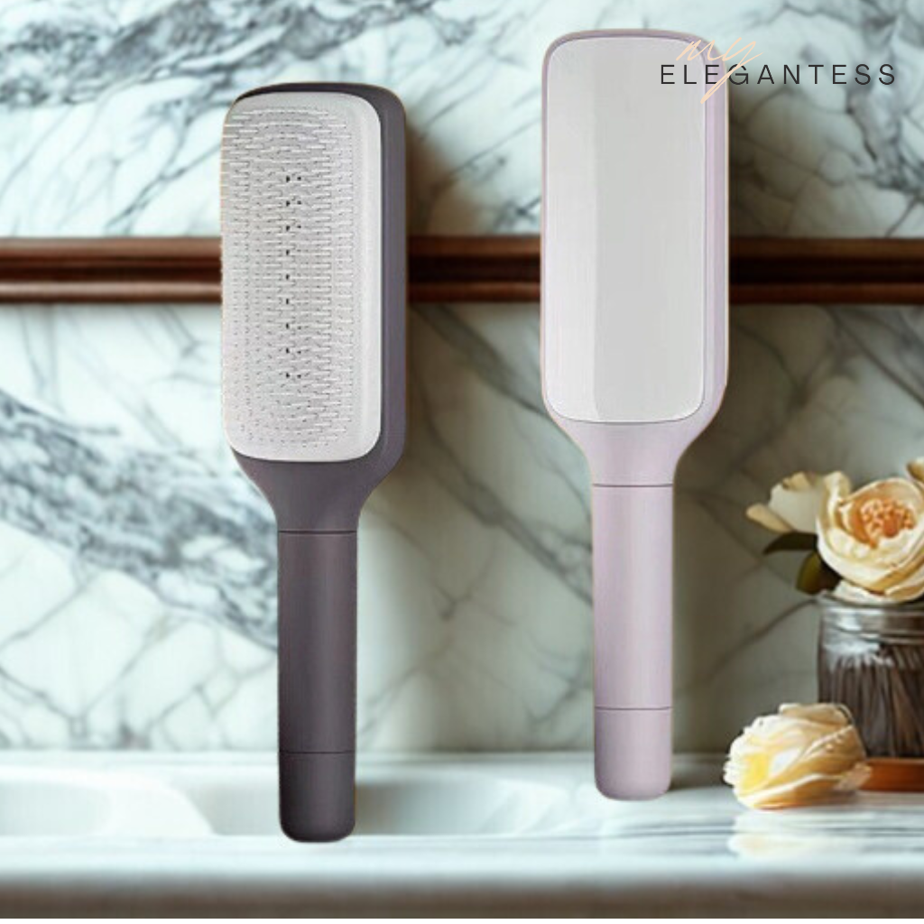 Diese Bürste ist kein normales Accessoire – sie ist dein neues Haarpflege-Geheimnis. 💎 Dank ihrer selbstreinigenden Funktion bleibt sie immer hygienisch sauber und schonend zu deinem Haar. Nie wieder Ziepen oder Haarreste – nur pure Pflege und Glanz.